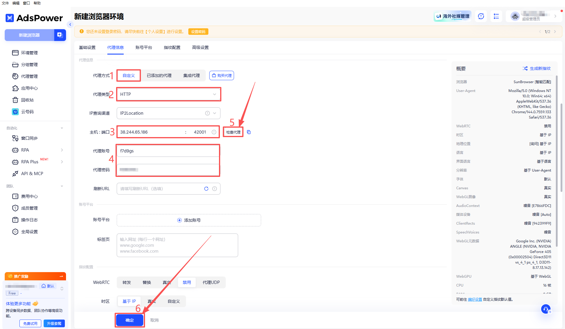 ⑥ 完成配置:完成上述步骤后,点击【确认】即可成功配置代理IP