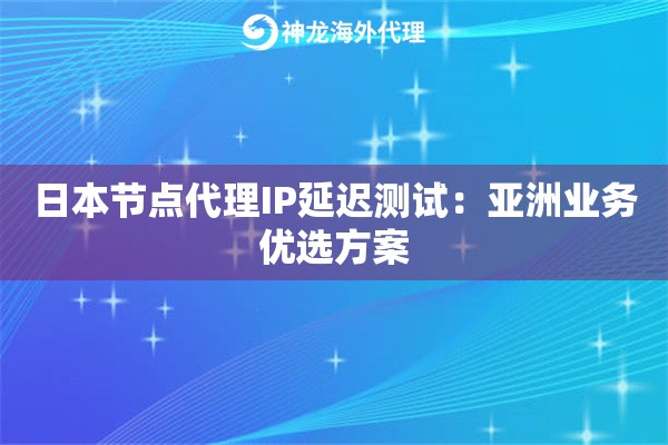 日本节点代理IP延迟测试是做亚洲业务必不可少的一环。要想效率高,就别偷懒,好好测速、好好选服务。像神龙海外动态IP代理这类提供多节点、低延迟、高稳定服务的厂商,值得放进你的备选清单里。记住,速度快不一定最好,适合你业务需求的才是王道。