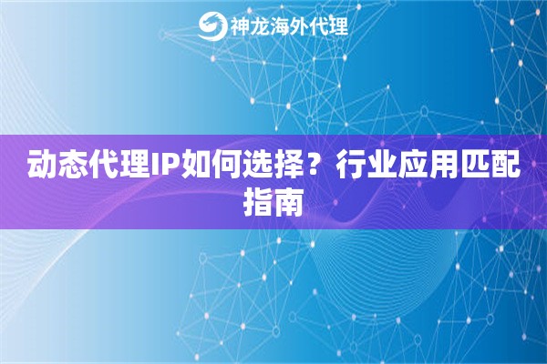 一份好的指南能让你少走弯路。希望这篇动态代理IP如何选择的行业应用匹配指南能真正帮到你。如果你需要高品质的国外动态IP或企业级代理IP,不妨试试神龙海外动态IP代理的服务,多类型方案总有一款适合你。