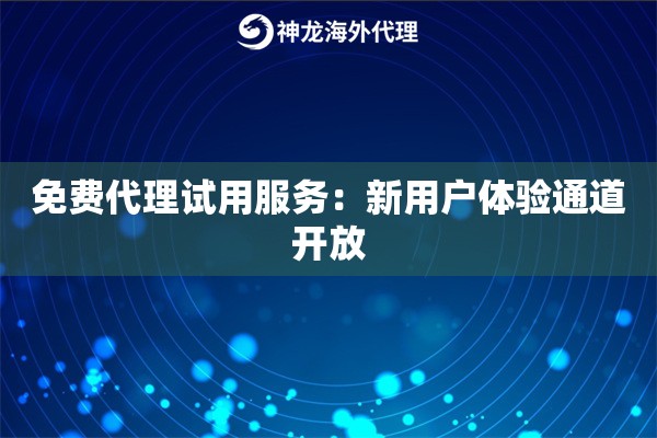找个靠谱的免费代理试用服务,对新手来说确实是低成本试错的好办法。尤其像神龙海外动态IP代理这种资源覆盖广、IP池大的服务商,体验过后再决定要不要长期用,心里也更有底。记住,重点是先明确自己需求——是要测试网站、做数据采集,还是跑营销任务——然后再选择相应的代理IP类型和套餐。