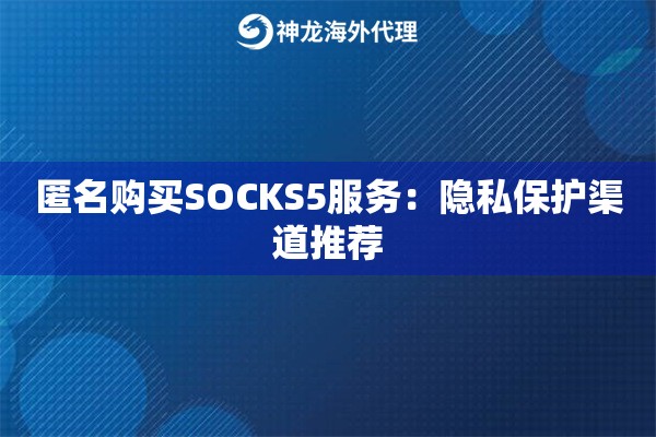 匿名购买SOCKS5服务不是啥玄学,关键得选对渠道。如果你想要隐私保护,又想稳定用SOCKS5代理,直接试试神龙海外动态IP代理,它家IP多、匿名,适合长期用。