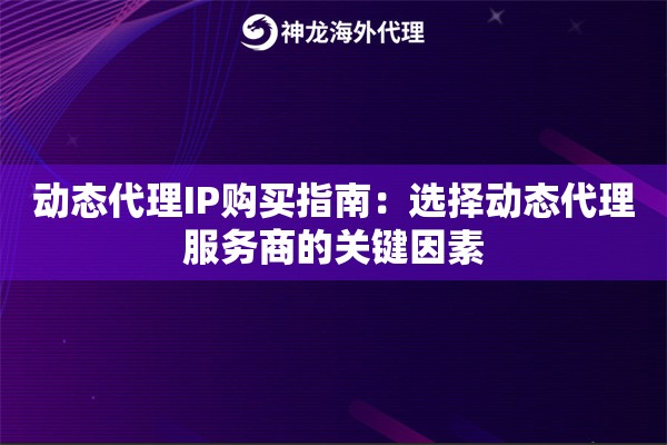 选择动态代理服务商的关键因素很多,不能只看价格。一份好的动态代理IP购买指南应该帮你全面了解这些因素,从而做出明智的选择。神龙海外动态IP代理在IP资源、代理类型、带宽支持等方面都做得不错,特别是他们的多类型专项动态代理方案和高带宽不限量代理支持,确实能解决很多实际问题。建议大家在选择前先明确自己的需求,然后对比几家服务商,选最合适的那家。