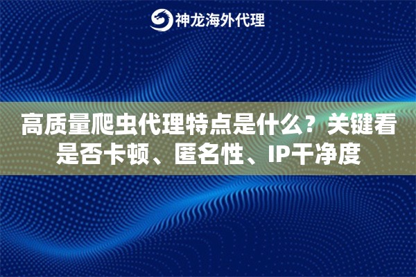 很多人搞数据采集或者做业务测试,最头疼的就是IP被限制。明明代码写得没问题,可跑着跑着就卡住了,要不就是IP被目标网站封了。说到底,选对代理IP才是关键。那高质量爬虫代理特点是什么?其实没那么玄乎,主要就看三点:卡不卡顿、匿不匿名、IP干不干净。