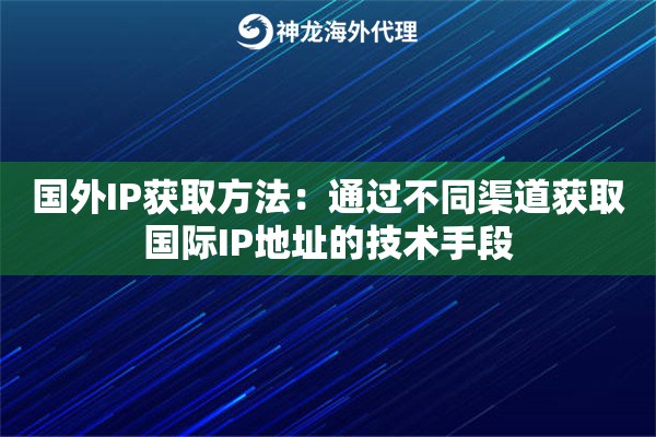 国外IP获取方法有很多,但并不是随便找个免费的就能用。很多免费代理IP不稳定不说,还可能存在安全问题。最好还是通过正规的代理服务商来搞,比如神龙海外动态IP代理,他们提供的国外动态IP既干净又稳定,特别适合企业级的需求。