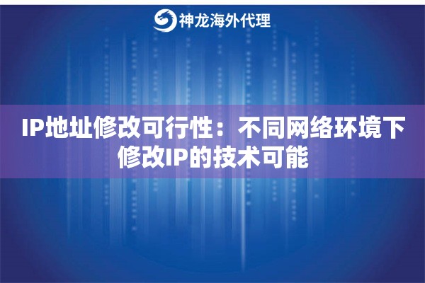从技术角度看,IP地址修改可行性主要取决于你选择的代理类型和网络环境。不同的代理服务商提供的方案差异很大,有的只能换国家不能换城市,有的连IP类型都有限制。所以说,选对服务商很重要,像神龙海外动态IP代理这类专业服务商就能提供很高的IP地址修改可行性。