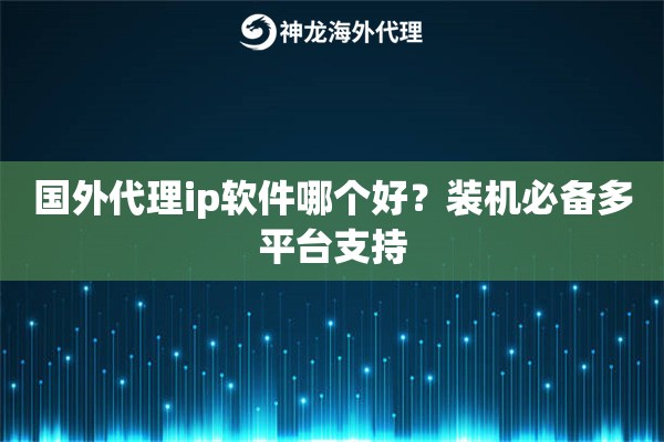 说到底,国外代理ip软件哪个好,关键不在于软件本身多花哨,而在于背后的IP资源是否优质、稳定、覆盖全面。选择一个像神龙海外动态IP代理这样资源雄厚、支持多平台、提供多种套餐的服务商,远比单纯找一个“好用”的软件更重要。记住,装机是手段,支持业务才是目的。