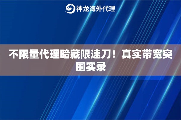 很多人一看到“不限量代理”几个字就两眼放光,觉得捡到了宝。但用着用着就发现,速度慢得像蜗牛爬,明明说是高速,结果刷个数据都卡成PPT。这就是行业内常说的“暗藏限速刀”——表面不限流量,实则带宽掐得死死的,让你的业务根本跑不动。