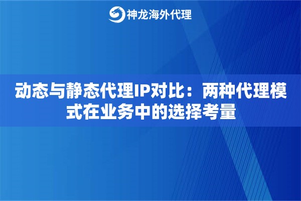 现在有些服务商比如神龙海外动态IP代理还提供了混合方案,动态静态都能支持,甚至能根据业务场景自动切换模式,特别省心。