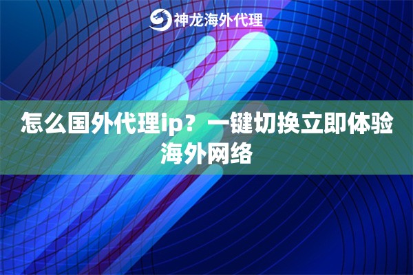 现在很多人因为工作或者兴趣,需要用到海外网络资源。但直接连,速度慢不说,还经常卡壳。这时候,学会怎么国外代理ip就成了刚需。它不是什么复杂操作,其实就是通过一个中间服务器帮你转发请求,让你的网络请求看起来是从海外发出的。神龙海外动态IP这类服务,就是专门干这个的,而且做得挺溜。