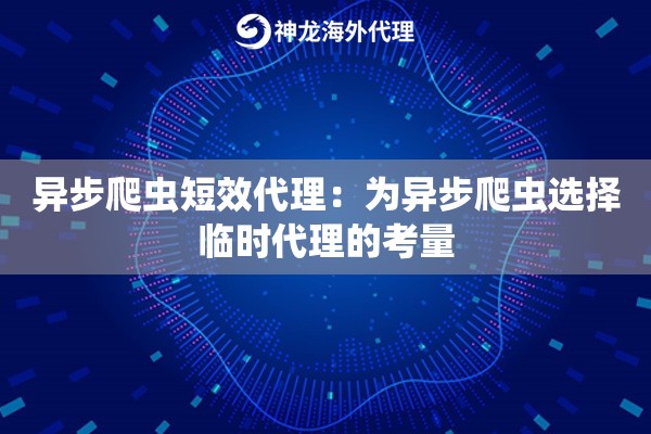 答:顾名思义,短效代理的生命周期很短,通常从几分钟到几小时不等。神龙家的动态IP池是实时更新的,非常适合这种临时性的异步爬虫任务,即用即弃,完美。