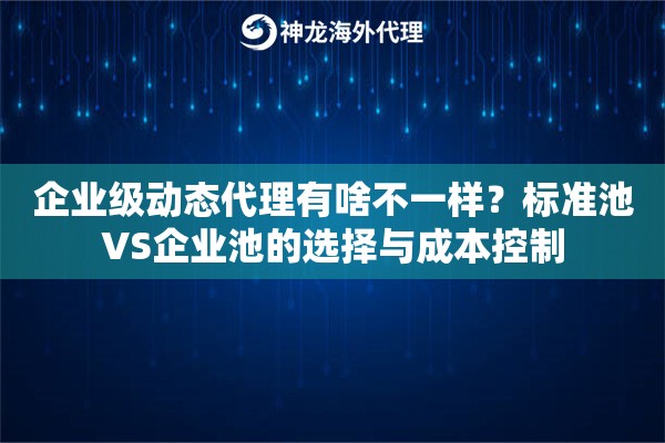 说到代理IP,不少人第一反应就是“换个地址呗”。但真到了企业用代理的时候,那讲究可就多了去了。普通代理可能就像路边摊,解个馋还行;企业级动态代理,那得是米其林后厨,讲究的是稳定、量大、还干净。神龙海外动态IP的企业级代理,玩的就是这个路子,它不是简单地给你个IP用,而是把资源池、稳定性、覆盖广度都给你打包成解决方案,专门对付高并发、长周期、大流量的业务场景。