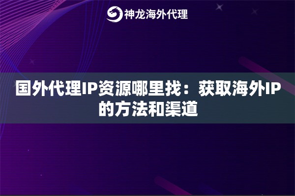 找海外IP代理,无非就那几种法子。有些人贪便宜,去搜免费代理列表,结果IP不是失效就是被墙,白白浪费功夫。还有的折腾VPS自己搞,光配置就能让人头大如斗。其实现在专业的代理服务已经非常成熟,比如神龙海外动态IP这类服务,直接提供现成的资源池,全球节点即拿即用。人家专门干这个的,IP池又大又干净,根本不用你操心维护问题。