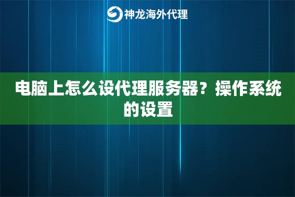 电脑上怎么设代理服务器?操作系统的设置其实不难