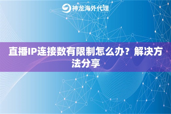 直播IP连接数限制是个现实问题,但绝非无解。通过借助神龙海外动态IP这类专业的代理IP服务,利用其庞大的全球IP资源和动态分配机制,你可以轻松有效地分散连接请求,打破限制,让直播流程更加顺畅稳定。关键是根据自己的实际需求,选择最适合的那一款动态IP代理服务,从而保障直播的稳定和高成功率。