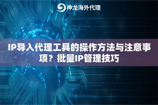 导入IP到代理工具这事儿,说难不难,但手生的人容易抓瞎。首先你得搞到靠谱的IP资源,比如从神龙海外动态IP这类服务商那儿拿到IP列表。通常他们会给你一个文本文件或者API接口,里面包含IP地址、端口、认证信息这些关键要素。