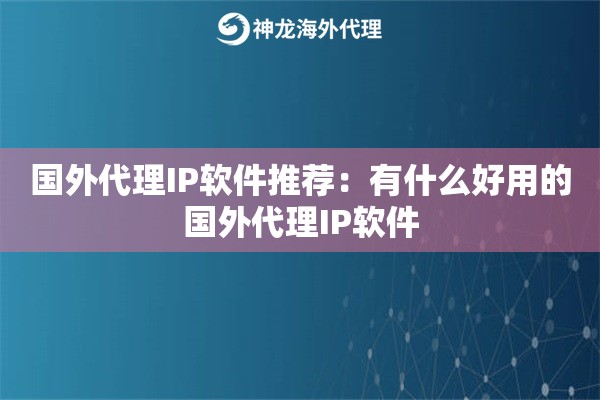 国外代理IP软件到底该怎么选