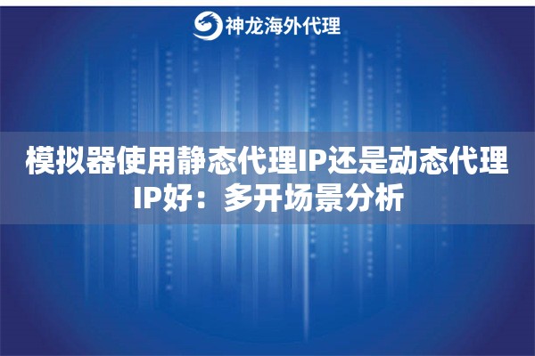 模拟器使用静态代理IP还是动态代理IP好?答案已经很明显。多开场景下,动态代理IP凭借其变化性和隔离性,无疑是更优解。关键是要选择像神龙海外动态IP这样资源充足、纯净度高的服务商,才能让多开业务跑得稳又跑得远。