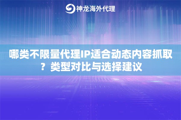 如果你在2026年还在做动态内容抓取,比如实时监控社交媒体话题、追踪电商价格变化、或者收集新闻资讯,那你肯定遇到过这样的烦恼:流量用得太快,预算根本控制不住。每次看到账单上惊人的流量费用,心里都在盘算,是不是该换个路子?今天咱们就来聊聊一个可能帮你解决这个问题的方案:不限量代理IP。但“不限量”听起来很美好,里面却有不少门道,选错了类型,可能效果还不如按流量计费的。这篇文章就帮你拆解一下,到底哪类不限量代理IP最适合你的动态内容抓取任务。