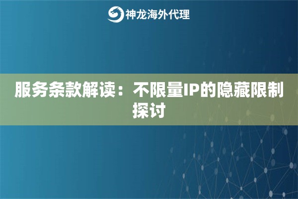 市面上不少代理服务商都爱拿“不限量IP”当金字招牌,乍一听以为可以敞开了用,流量管够。但这里头的门道可深了,不仔细琢磨服务条款,很容易掉坑里。所谓不限量,往往不是真的让你无节制挥霍,而是藏着不少软性限制。比如带宽可能被掐脖子,或者高并发时给你来个隐性降速,这都属于服务条款里常见的“合理操作”。所以啊,看条款不能光看标题,得抠细节。