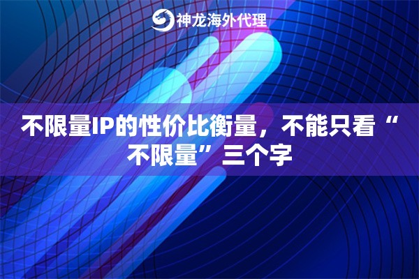 你的业务需要哪些地区的IP?全球化的业务需要全球化的资源。高质量的代理服务应能提供广泛的国家和地区覆盖,并且IP类型要多样,例如数据中心IP成本效益高,而住宅IP则真实可靠,适用于不同应用场景。选择与自身业务高度匹配的代理类型,才能将“不限量”的效益最大化。 面对市场上众多的选择,你可以通过以下几点来做出明智决策: 明确自身核心需求:先别急着看“不限量”的招牌。静下心来想清楚,你的业务规模有多大?日均流量需求是多少?对IP的纯净度和成功率要求有多高?主要目标地区是哪里?回答这些问题,是找到合适服务的第一步。 深度测试至关重要:永远不要轻信宣传语。请求试用或购买最小规格的测试套餐是必不可少的一环。在测试期间,重点评估其连接稳定性、实际速度、IP池的纯净度以及客服的响应速度。真实体验远胜于千言万语。 考察技术支撑与售后服务:一个优秀的不限量代理IP服务商,必然有强大的技术团队作为后盾,能够及时处理网络波动、IP失效等问题。及时有效的客服支持,能在你遇到问题时迅速提供解决方案,保障业务的连续性。 对于需要高强度、长时间稳定运行的大规模业务,例如大规模数据采集或自动化营销,普通的小型IP池难以胜任。这类场景对带宽、并发数和IP池纯净度有着极高的要求。 针对这种需求,神龙海外动态IP提供了相应的解决方案。其高带宽不限量代理支持旨在保障高并发与长期稳定运行,适合大规模流量与持续性业务。其服务特点包括庞大的纯净IP资源库,以及覆盖广泛的全球资源,网络连接成功率较高,旨在满足多种海外业务场景对稳定性和成功率的苛刻要求。 问:不限量套餐真的完全无限制吗?
