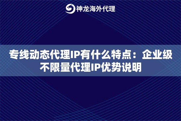 企业级不限量代理IP,顾名思义,是为中大型业务场景设计的资源方案。其核心优势在于“无流量约束”和“高并发支持”。不同于按流量或次数计费的模式,不限量套餐允许用户在单位时间内无限次使用代理资源,特别适合需要持续抓取数据、多账号管理或长期在线交互的业务。例如,神龙海外动态IP提供的高带宽方案,就专为大规模流量设计,能够保障业务在长时间内稳定运行而不必担心资源耗尽或额外费用。