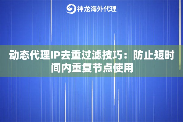 许多专业的代理IP服务商会提供API或SDK来支持去重功能。例如,神龙海外动态IP的服务允许用户通过参数设置IP更换频率或排除最近使用的节点。在调用API获取IP时,可以指定需要排除的地区、IP段或特定标签,从而从源头避免重复。