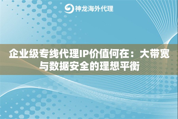 很多企业管理者一听到代理IP,第一反应可能就是“隐藏IP地址”。这种理解没错,但太片面了,尤其当我们将目光投向企业级专线代理IP时。它早已超越简单的地址伪装,成为支撑现代企业数据业务稳健运行的底层基础设施。其核心价值,正是在于为企业找到了一个微妙的平衡点:一边是满足海量数据传输所需的大带宽,另一边是守护企业核心命脉的数据安全。这个平衡,正是企业级专线代理IP价值何在的答案。