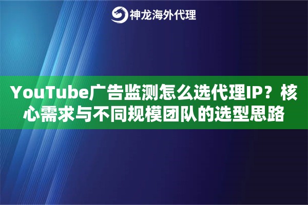 广告监测可能需要加载大量视频和图片素材,连接不稳定或速度慢会严重影响效率,甚至导致监测任务失败。稳定的代理连接是持续获取数据的基础。 5. 大规模并发与成本控制: 当需要同时监测多个地区、多个频道或关键词时,可能需要成百上千个IP同时工作。这就对代理服务的并发能力和成本提出了要求。如何在高并发需求和预算之间找到平衡点,是选型的关键。 团队规模和监测目标不同,选择的代理IP方案也应有差异。 特征: 预算有限,监测范围相对聚焦(如1-3个核心国家/地区),并发需求低。 选型思路: 优先考虑灵活性和性价比。不必追求庞大的IP池,但要求IP质量高(纯净住宅IP为佳)、地理位置精准。可以选择按流量计费或IP数量计费的套餐,用多少买多少。重点在于获取关键市场的准确数据,验证自身广告投放效果。 方案建议: 可以选择提供动态住宅IP按需提取的服务。例如,使用类似神龙海外动态IP这样的服务商,其标准池中的动态住宅IP资源,足以满足小范围、高精准度的监测需求。你可以精确指定所需IP的国家、州甚至城市,确保监测视角的准确性。 特征: 有稳定的监测需求,需要覆盖多个市场(如5-10个国家),可能同时运行多个监测项目,对数据量和并发有一定要求。 选型思路: 需要在质量、规模、成本三者间取得平衡。可以考虑混合使用数据中心IP和住宅IP。对精准度要求极高的核心市场使用住宅IP;对广度要求高、精准度要求稍次的市场,使用高质量的数据中心IP来降低成本。需要代理服务具备良好的管理和组织功能,便于团队分配和使用IP资源。 方案建议: 寻找提供多类型代理方案的服务商。例如,神龙海外动态IP提供从经济型数据中心IP到真实住宅IP的多种选项。团队可以为不同的监测任务配置不同的IP类型。其全球覆盖的资源也能轻松支持多地区监测任务。 特征: 监测规模庞大,需要7x24小时不间断、高并发地采集全球广告数据,对数据完整性、时效性和稳定性要求极高,预算相对充足。 选型思路: 规模、稳定、合规是第一要务。必须选择企业级的解决方案。需要拥有庞大且纯净的IP池(数千万级别)以支持海量轮换,避免IP重复率过高。必须提供高带宽和不限量的代理支持,以确保大规模并发下的流畅稳定。需要服务商提供专属的技术支持、定制化解决方案和详细的使用报告。 方案建议: 直接采用企业级代理IP服务。例如,神龙海外动态IP的企业池服务,专为满足高标准业务需求设计。其拥有9000万+的纯净IP资源池,并通过机器与人工实时维护去重,确保IP的高度可用性与纯净度。高带宽不限量的代理支持,能够完全保障长期、高并发监测任务的稳定运行,是企业级广告监测与市场调研的坚实数据基础。 Q:做YouTube广告监测,一定要用住宅代理IP吗? A: 不一定,但强烈推荐。数据中心IP成本低,但易被识别和封锁,适合对精准度要求不高、短期的广度扫描。对于需要深度、长期、精准的监测(尤其是模仿真实用户行为),动态住宅IP代理的稳定性和安全性远高于数据中心IP,是更可靠的选择。 Q:如何判断一个代理IP服务商IP池的纯净度? A: 可以通过几个方面侧面评估:一是看服务商是否明确标注“纯净IP”并提供去重和更新机制;二是试用其服务,用其IP访问Google/YouTube等平台,观察是否频繁出现验证码或访问限制;三是了解其IP来源,正规的住宅IP代理服务商会通过合规方式获取资源。例如,神龙海外动态IP强调其通过机器与人工实时更新去重,确保IP池的纯净与合规。 Q:我们团队需要同时监测多个国家,代理IP的地理位置覆盖重要吗? A: 至关重要。广告的展示具有极强的地域性。只有使用目标地区的IP进行访问,你看到的广告列表、排名、竞争对手信息才是真实的。选择像神龙海外动态IP这样覆盖200+国家/地区的服务商,可以确保你无论监测哪个市场,都能获得本地化的视角和数据。 Q:为什么有时候用了代理,监测任务还是失败了? A: 除了代理IP本身的问题(如不纯净、被屏蔽),还需注意:1. 行为模式:过于机械化的高频请求,即使用住宅IP也可能触发风控。需要模拟人类操作的间隔和随机性。2. 网络环境:请确保你的本地海外网络环境稳定。我们的代理IP服务需要在此基础上使用。3. 账号管理:避免使用同一个YouTube账号通过全球各地IP频繁登录,这本身就很可疑。建议将账号与IP地理位置绑定。 Q:对于初创公司,在代理IP上应该如何控制成本? A: 建议采取“聚焦核心,逐步扩展”的策略。初期购买小规模的动态住宅IP套餐,专注于你最核心的一两个市场进行深度监测。随着业务扩大,再逐步增加IP的覆盖范围和数量。也可以咨询服务商是否有适合初创团队的弹性套餐,将成本与你的实际使用量紧密挂钩。不同规模团队的代理IP选型思路