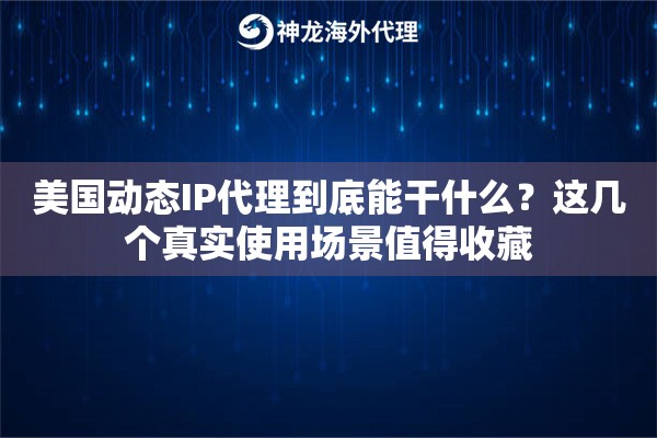 如果你在找一个适合企业级使用的美国动态IP代理服务,神龙海外动态IP是一个值得了解的选项。