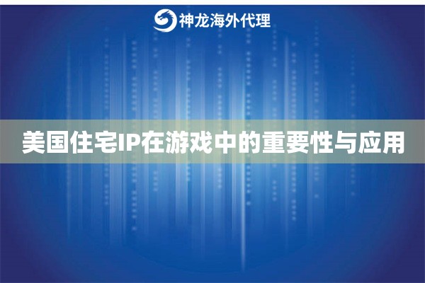 美国住宅IP在游戏领域中扮演着至关重要的角色。它不仅为玩家提供了更为稳定的连接体验,还能够有效规避某些地区的限制,确保游戏的顺畅进行。在当今这个信息技术飞速发展的时代,越来越多的游戏爱好者意识到,选择合适的IP地址,尤其是美国住宅IP,可以帮助他们在游戏中获得更好的表现,提升胜率。游戏的世界如同一片浩瀚的海洋,而住宅IP则是那艘稳固的航船,让玩家在这片海域中自由驰骋,尽情享受游戏的乐趣。