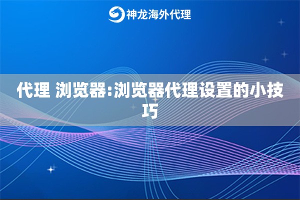 浏览器代理设置的小技巧:手把手教你玩转神龙海外代理IP