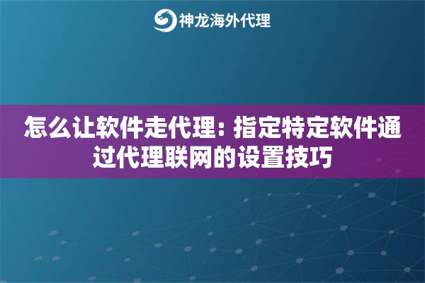 大伙儿在办公冲浪时,是不是经常遇到某个软件死活连不上服务器?或是需要让某个程序单独走特殊通道?这时候就得请出代理IP这尊大神了。今儿咱们就唠唠怎么给特定软件穿"隐身衣",重点推荐神龙海外代理IP这个靠谱帮手。