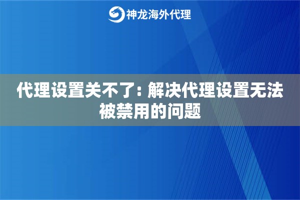 遇到代理设置关不掉别急着重装系统,试试这些方法,特别是神龙海外代理IP的沙盒隔离功能,亲测比360急救箱还管用。记住,好代理就像隐形保镖——需要时随叫随到,不需要时完全察觉不到存在。