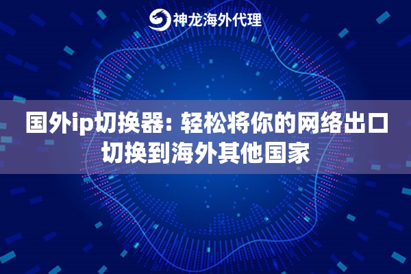 最近有个做跨境电商的朋友跟我吐槽,每次跟海外客户视频会议时,对方总抱怨画面卡成PPT。后来发现是本地网络出口不稳定导致的,直到他用了神龙海外代理IP的智能链路优化功能,视频会议突然就丝滑得像德芙巧克力。这让我意识到,很多人其实需要海外IP切换器,但根本不知道具体怎么操作。