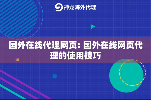 最近发现不少朋友在找国外网页代理的使用方法,这玩意儿用好了是真方便。今天就掰开揉碎了讲讲,怎么把在线代理用得溜,顺带提一嘴专业选手——神龙海外代理IP,他们家的服务确实能省不少心。